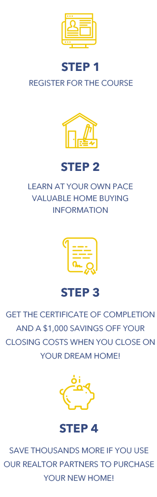 LEARN & COMPLETE OUR HOME BUYER COURSE AND SAVE $1,000 - $10,000 ON YOUR HOME PURCHASE.